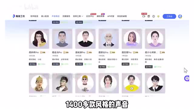 它这里面已经有八百多个a i配音员,可以生成一千四百多款风格的声音。你想给任何领域的视频配音都能在魔音工坊这找到合适的声音。