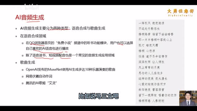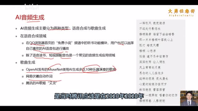 有很多目前的创作人就是也会利用他的这个系统的去创作这样一个歌词啊,创作歌词还有呢腾讯的a i歌姬艾琳。那么艾琳的话呢嗯是当时腾讯应该是在二零二零年二零二零年跟王俊凯啊然后携手呢推出来的。就是我们如果只是呃作为用户的话呢,我们只要选择一定的关键字。