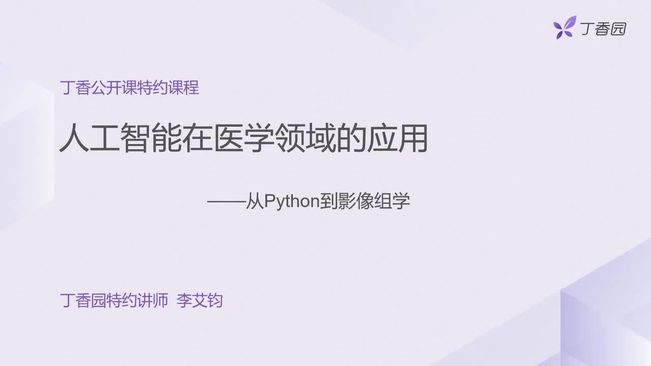 咱们这门课程的名称是人工智能在医学领域的应用,从python,到影像组学。名字有点长啊,可能很多同学看到人工智能python这些名字,会莫名的觉得这些东西都很高大上,会觉得这些东西是不是都离咱们很远,很难啊,怕掌握不了这个东西。事实上呢这个东西并没有大家想象的那么难以理解啊,大家也看到了,我本人呢也是临床医学专业毕业的。自我本科毕业到现在进行工作这么多年以来啊,我一直在学习和利用这个东西。那么我相信我能掌握和学习的东西,大家也同样能够掌握。