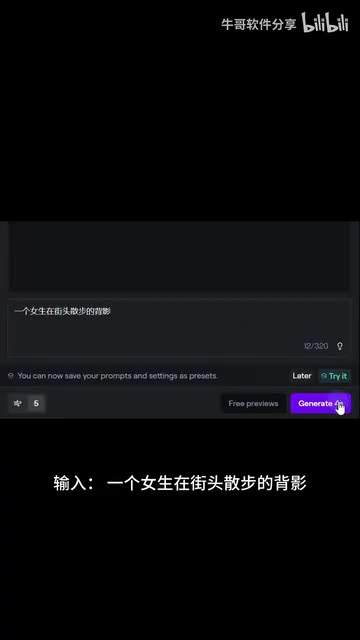 比如输入一个女生在街头散步的背影,不到一分钟它就能帮你生成相关的视频。