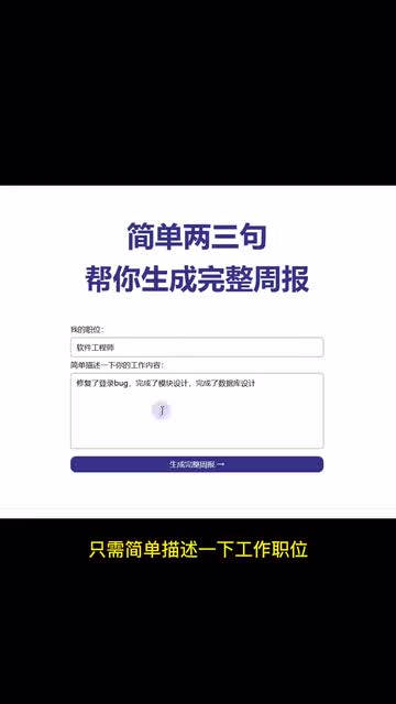 一、日报周报生成器,只需简单描述一下工作职位和工作内容,就能自动生成一份条例清晰的周报或日报。