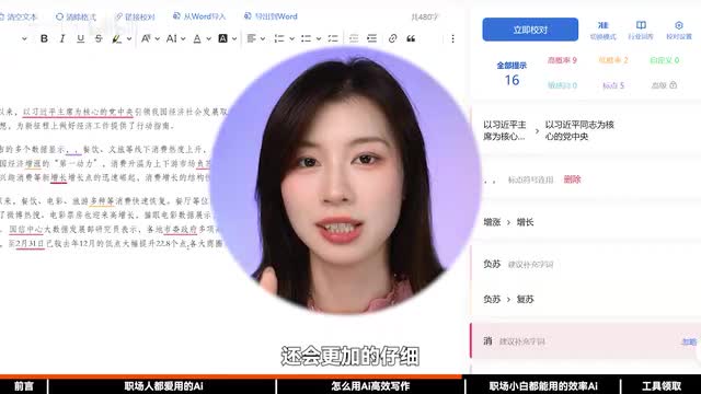 那写好的内容再交给领导之前,用这个a i先检查一遍,只要粘贴文本就能够自动找出文章中的敏感词、错别字、易混词,还会直接给出修改意见,给你一个一个字检查更快,还会更加的仔细。甚至就连大厂的前台员工也因为会用a i都被称为六边形战士。一些资料素材不知道咋处理的时候呢,用这个a i工具抠图点这里,转换格式点这里,证件照处理点这里。