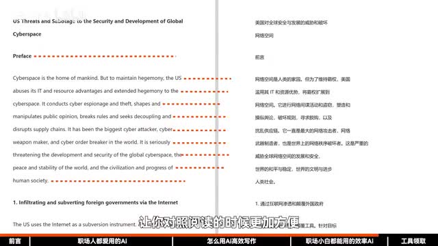 整理大量的文档资料的时候呢,也因为只要利用a i几秒钟就可以完成全部的资料速读,自动整理出文档的重点内容、核心数据、关键词等,还可以通过对话追问进行专业名词的解释补充。或用a i的头饰搜资料的时候,因为只要利用a i来对全网的搜索结果进行总结提炼,不光屏蔽了垃圾广告,还把结果整理成了大纲和思维导图,点击数字还可以直接跳转对应的网页进行深度了解。不光效率比你快搜出来参考借鉴的内容质量也比你好,省时又省力。