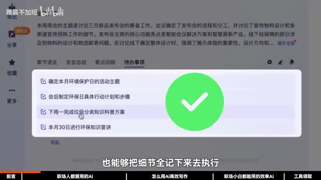开完会就自动根据关键词做好的会议记录。跟客户开会的时候,你能够把细节全记下来去执行。所以不光上班比你更加轻松,办事儿还比你更加靠谱。