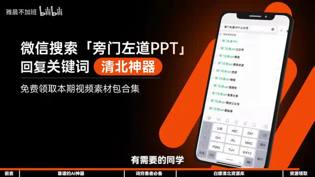 那本期视频提到的清北神器和网站,我都整理放在了这一个清北神器指南表格里,整理不易有效的同学三连一下就可以在评论区免费领取哦。如果评论区链接被吞有效的同学,只要辛苦前往微信搜索我的公众号旁门左道p p t,发送暗号清北神器就可以直接领取啦。我是亚忱,关注雅晨不加班,帮你高效工作,精彩生活。