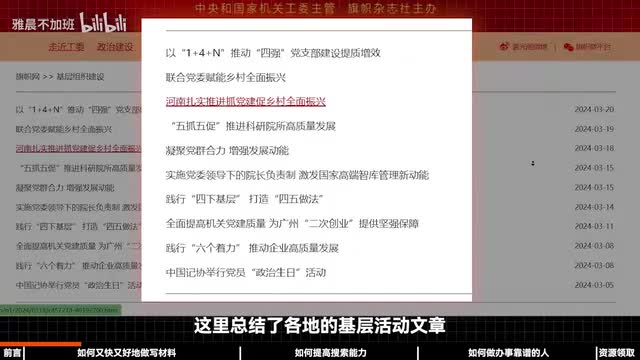这里全是新人中是真案例。支部党建的总结活动就去旗帜网的基层组织建设专栏,这里总结了各地的基层活动文章。学习心得体会就去共产党员网旗下的先锋文汇,这里集纳了全国各地公务员的优秀来稿。