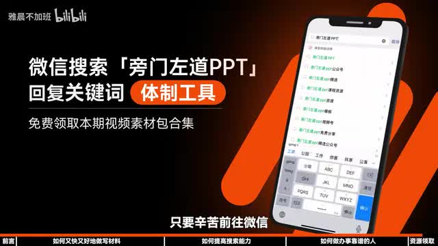 除此以外呢我还把上面提到的法律法规以及官方数据等权威平台的合集,s o p的表格,会议纪要的模板等资源一块打包好了。有需要的同学只要辛苦前往微信搜索公众号旁门左道p p t,发送好体质工具就可以直接领取啦。希望本期视频呢会对你有帮助。