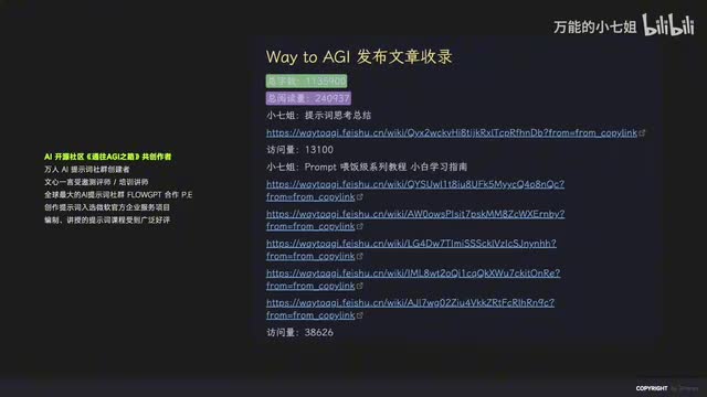 我是一位曾经从事一三年产品经理的,目前是a i创业者。那么同时呢我是ai开源社区通往a g i之路的共创作者,我是一名提示词工程培训师,目前呢我正在致力于研究a i加知识管理体系,在这个领域做出我自己的一些探索。在v二a g i这个开源社群当中,我在过去的半年当中分享了很多的教程翻译啊,以及一些提示词使用的心得。这可能是国内最大的开源ai学习社群,我发布了约三十到四十篇原创文章,累计一百多万字,二十多万访问,也因此启发了很多同学加入大模型提示词的学习中。