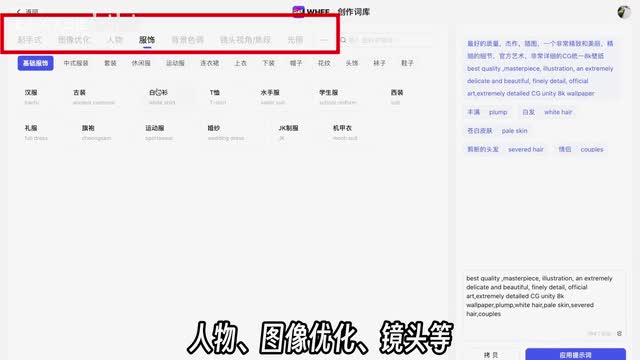 你还可以进入它的创作词库、人物图像优化镜头。等各种pro都给你写出来了,直接选择就好。