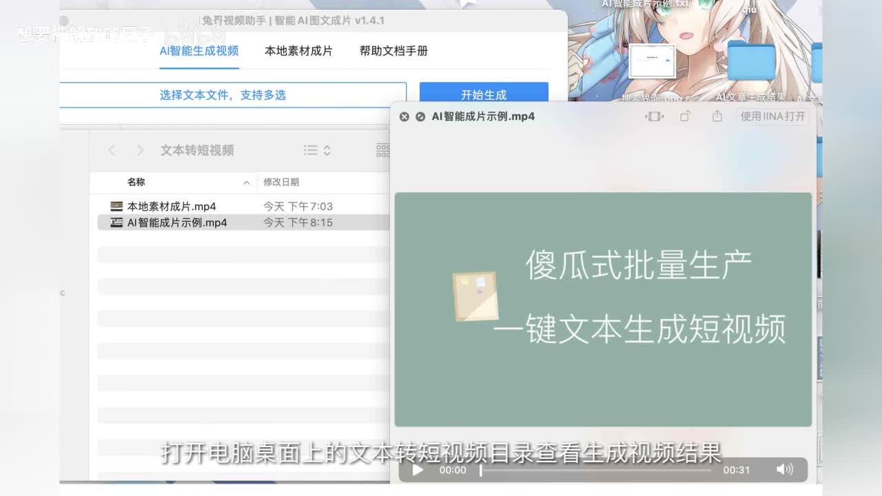 打开电脑桌面上的文本传短视频目录查看,生成视频结果。