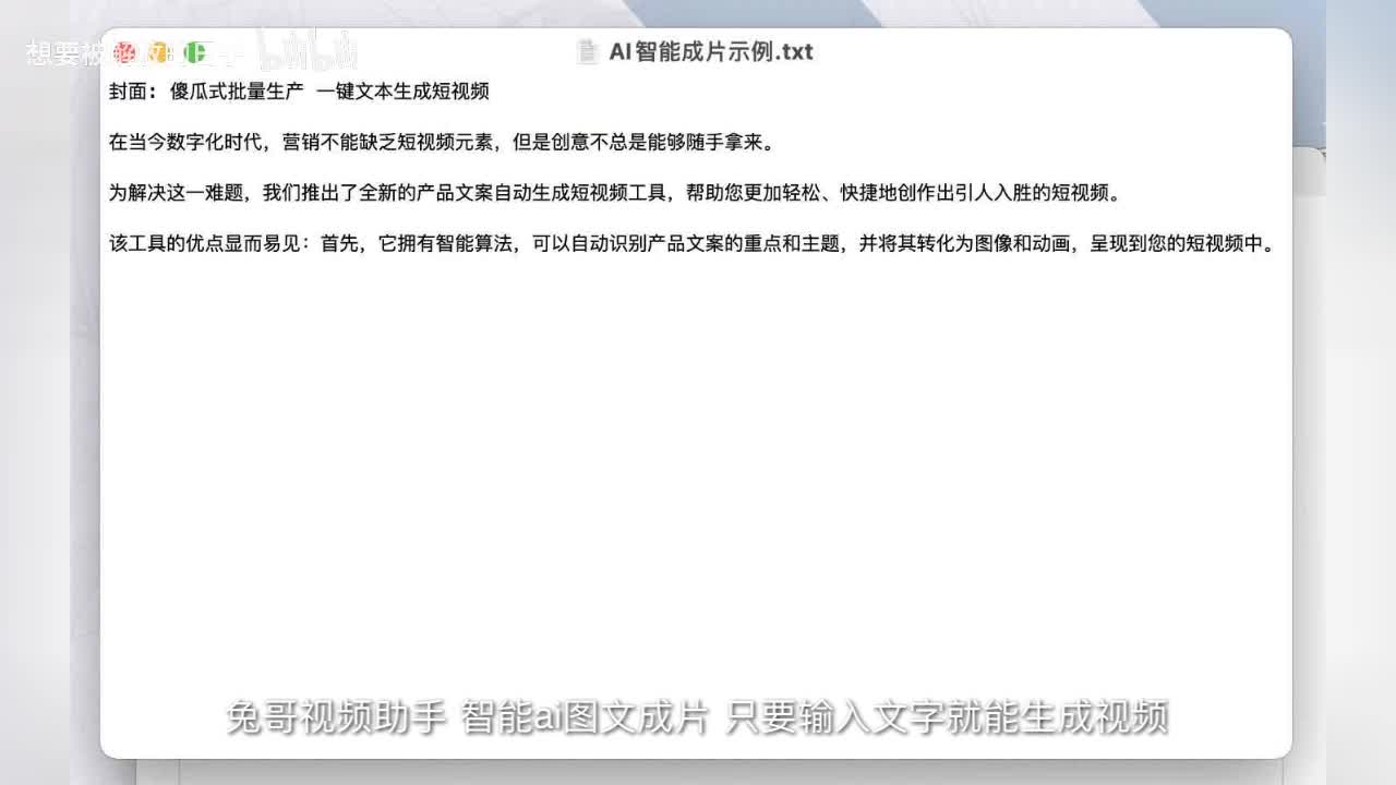 兔哥视频助手,智能a i图文成片,只要输入文字就能生成视频。