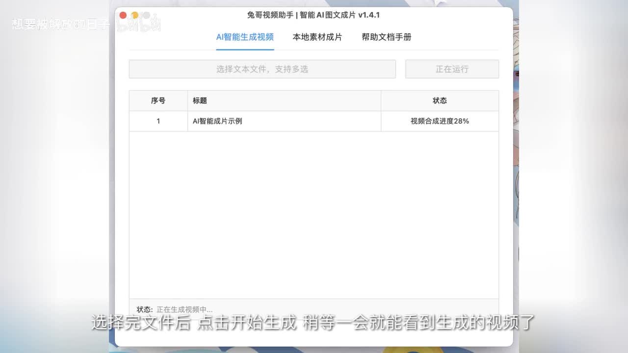 选择完文件后,点击开始生成,稍等一会就能看到生成的视频了。
