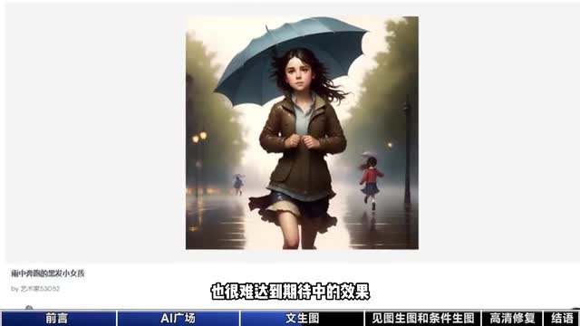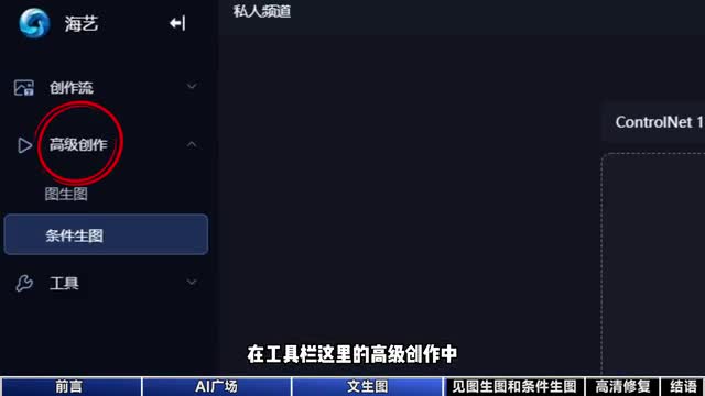最后点击创作,这时还不要急着生成,再点一下这个魔法棒,对整体描述润色一下,最后就可以点击生成了。如果觉得太麻烦,还可以点击这个头子,自动帮你生成源源不断的图片。在工具篮子里的高级创作中啊,还能看见图生图和条件生图两个功能。如果图片缺胳膊少腿,就打开这个图生图的功能,选择局部重绘,选择一下需要复原的区域,在输入框中输入想要的效果,点击生成,就能得到一张完整的图片了。
