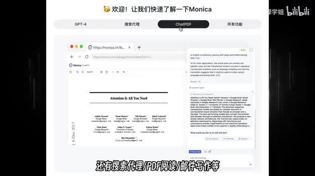 四monica在monica中除了g p t四,还有搜索、代理、p d f、阅读、邮件、写作等需要翻墙。monica的价格是九十九美元一年。