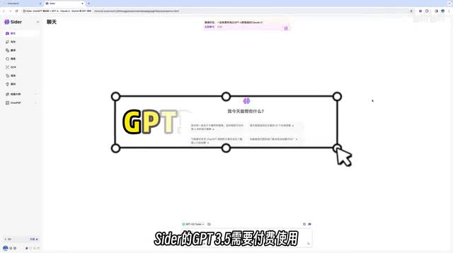sider a i是一个chrome插件,需要在g p u中使用,里面也包含了像g p t四、claud等模型。sider的g p t三点五需要付费使用,一百条g p t四一个月需要五十人民币,价格还是比较高的。