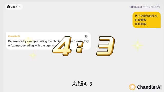 g p t四的翻译就地道很多,这一局g p t胜大比分四比三到了统计总分的时刻。rock六道题答对了三道,准确率百分之五十。