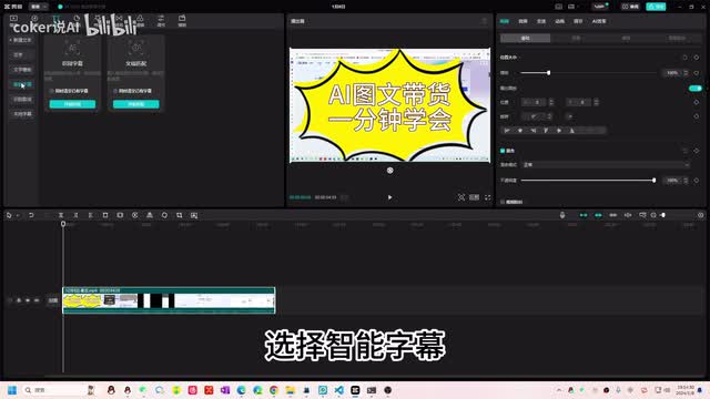 打开剪映五点零版本以上,把视频丢进轨道,然后文本选择智能字幕,识别完成后点击叉号返回。