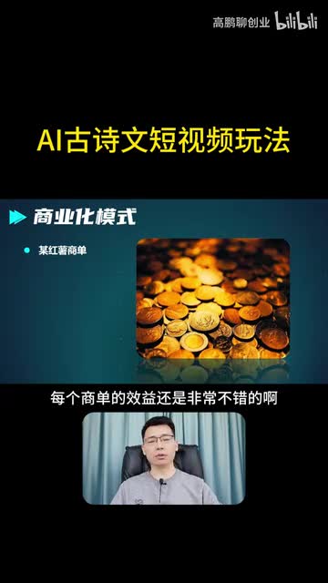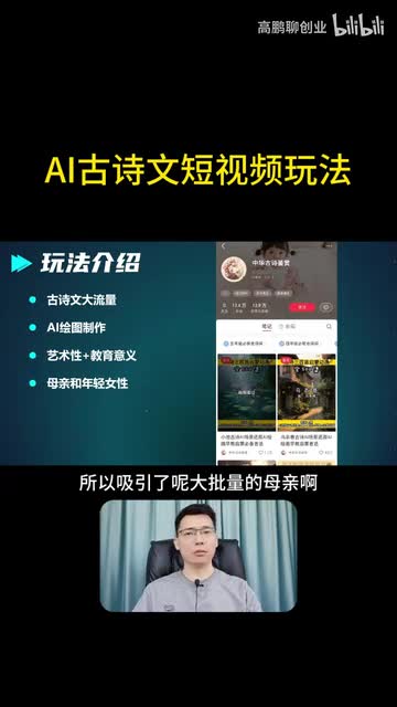 那么第三块呢就是你可以用这种方式去去短视频,挂小黄车带什么的,带带古文的这种书籍,或者说呢流量了之后,你你直直播带带一些儿童相关的一些周边的用品啊,这些呢都是可以的那这种玩法为什么能够做起来?像这种玩法,为什么它这种账号比较容易火啊?就因为呢它把传统文化跟a i进行了结合。a i呢作为一个工具的辅助啊,现在呢它已经很强大了。你会看到呢我之前分享了很多关于a i的玩法,不同的作者呢用a i干了不同的事儿啊,那么今天给大家分享这个玩法呢,就是借助a i创造这种超有吸引力的,而且呢比较具有观赏性的这种独特的艺术表现形式啊,而且呢它还具有一定的教育价值,既传播了传统的文化,又让自己呢有了一种新的商业化模式,这种玩法还是非常值得去尝试的。好,那么今天的分享呢就到这儿了。