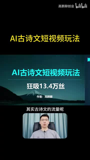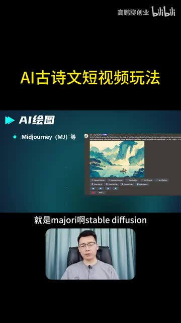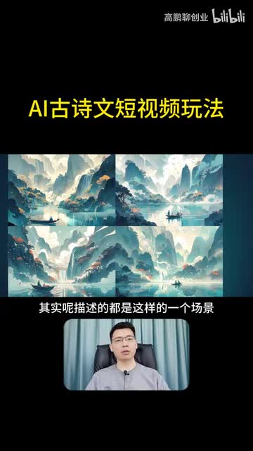 今天呢详细给大家拆解这种a i古诗文短视频的玩法。其实古诗文的流量呢一直都是比较大的。然后呢这个作者呢他的画面都是用ai绘画工具制作出来的。因为我们知道呢古诗文里边儿会涉及到很多的场景,那么这种场景呢,我们可以借助这个工具它它把图绘制出来,然后呢,用图片添加转场的形式制作视频。