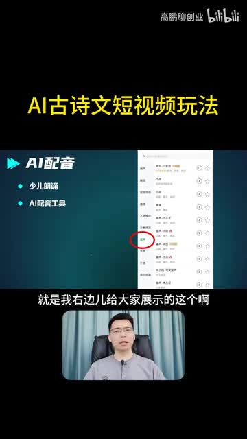 首先第一步呢就是我们需要去筛选啊古诗文,还有呢原创注解。这个注解的话呢因为我们知道呢有很多啊官方的这种注解,对吧?不同版本的。那么拿过来之后呢,我们要用自己的嘴巴呢再给他讲一遍啊,做一个原创输出。那么有了古诗文和原创的注解之后呢,我们要用a i工具啊把这些内容呢给它配音出来。
