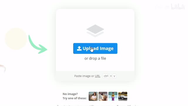 首先我们从工具箱点击跳转到这个网站,然后我们看到这里有一个upload image。我们点击这个upload image按钮,上传需要抠图的图片。