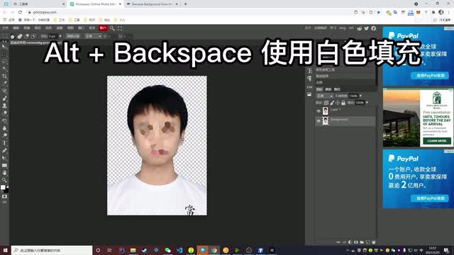 复制图层,选择最底下的图层,使用白色填充。点击文件另存为p n g保存到本地,那这样一张白底证件照就做好了。