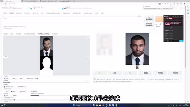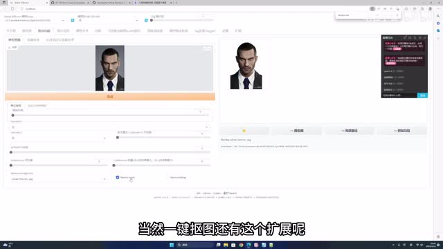 这个功能呢是在附加功能里面的下面,呃,这个缩放比例呢我一般会调到一,然后先给大家看一下这个生成的情况是怎样的。比如说我这里有一张照片,然后把这个照片生成我们的呃抠图,进行一个抠图。那么我们就可以选择它里面的其实会有很多的一个模型。不过这个模型呢啊。