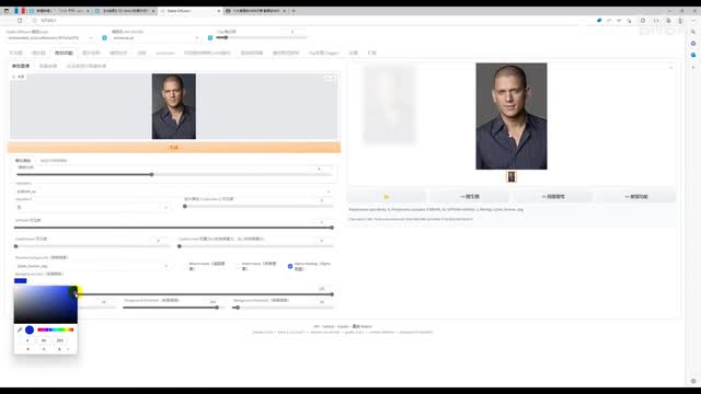 想要完成证件照的一键抠图,我们先需要了解一下插件的一些重要参数。首先是背景颜色更换功能,选择好模型后,选择我们所需要的背景颜色,点击生成就能生成对应颜色的证件照了。当然选择好背景颜色后,记得将背景透明度调到一百哦。