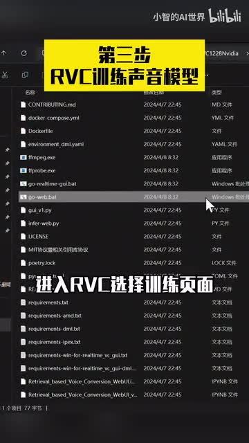 首先下载r v c安装包,本地配置不够的话,可以云端来做。安装好后,点击文件夹中的bug文件,进入选择训练页面。训练声一共有三个环节,分别是训练素材处理、声音特征剔除。可一键训练。