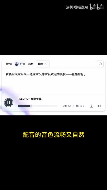 第六个real a i只需输入文案就能帮你生成配音。我要给大家带来一道新的音色流畅,就在有了这个a i再也不用自己给视频配音了。
