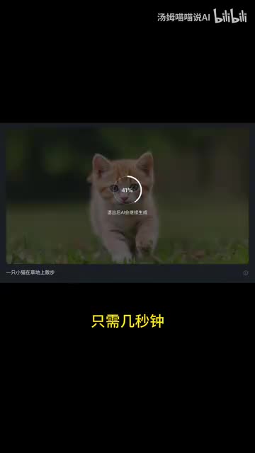 比如我输入一只小猫在草地上散步,点击生成只需几秒钟,小猫在散步的视频就完整生成了。有了这个a a i可以不视频素材了。