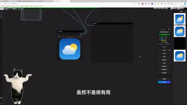 就连这个管理器它也是一个第三方节点,而且还会有一些比较搞怪的啊,比如说这个节点就会在出图的时候往屏幕上放一只猫咪。呃,虽然不是很有用,但。确实挺有趣的。哎,即便是抛开ai绘画相关的部分啊,康复u i也可以当做一个传统的图像编辑器来用。