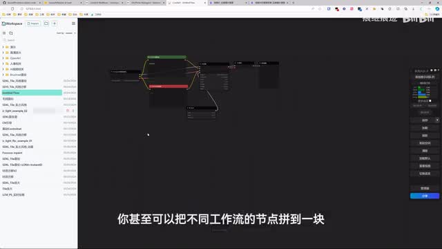 而且一旦有什么新技术,只要这个代码开源了,马上就会有开发者适配对应的节点。因此如果你想体验最新的技术,那conf u i绝对是首选。另外节点也不是局限于这种框框的样式啊,它也可以用来增强界面功能。比如右键菜单里的这几个选项,左边的工作流管理,右侧的资源管理和图片历史记录,这些都是第三方节点的功能。