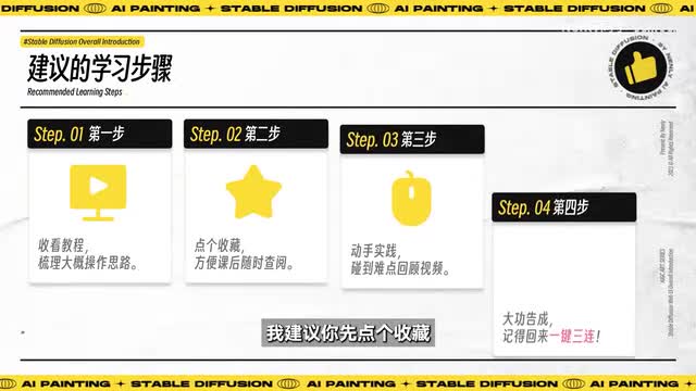 我们会在第五课里针对这些特性讨论更多。以上就是本期视频的所有教学内容了,来做一个总结。在今天的这一节课里,我们了解了ai绘画的基本原理,介绍了stable diffusion这款非常受欢迎的ai绘画应用,并提供对它进行本地安装部署的方式。随后我们对s d的基本操作界面进行了简单的介绍,并尝试着在里面指挥a i生成了一幅简单的风景人物插画,同时熟悉了对图像进行保存导出的方式。通过这节课的学习,你已经可以说是初步入门了stable diffusion这款应用。并且具备通过它来阐述作品的能力了。在下一节课里,我们将开始针对它的各方面功能做进一步的拓展。首先要攻克的就是文生图text to image这一基本的绘制方式了。我将在其中和你详细的讨论书写prop提示词的基本逻辑,以及如何利用各种提示词的规则来增强或者去除画面内容,并系统的讲解出图参数的设置要点。
