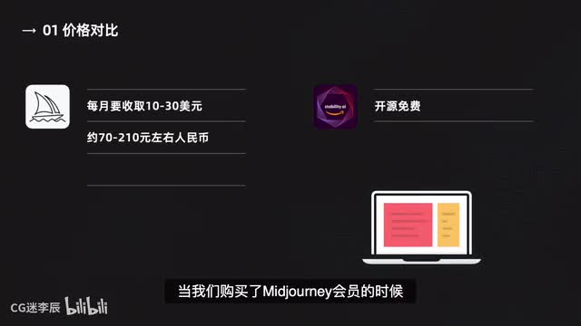 首先两款软件最直观的区别就是一个收费一个免费。mdi y每月要收取十到三十美元的费用,大约是七十到二百一十元左右的人民币价格。而stable diffusion则是开源免费。这里或许有人会说啊,这个环节的对比毫无疑问是stable diffusion胜出。