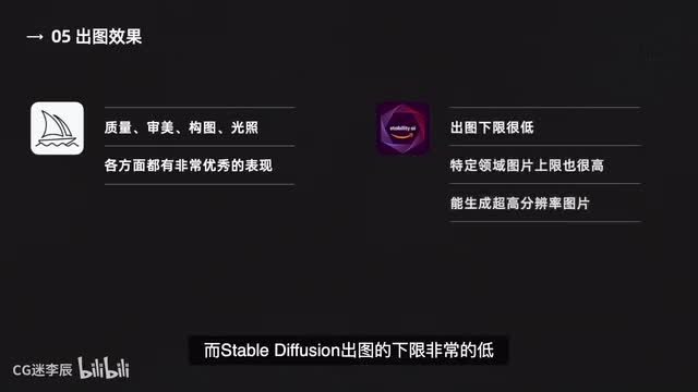 在图片分享社区你可以看到stable division绝大部分的都是角色图片。为了对标omi journey,stable diffusion最近也是开发了能生成各种风格和概念的大模型s d x l一点零,并且上架disco。不过从目前生成效果来看,还有不少的提升空间。出图效果mid jene生成的图片在质量、审美、构图、光照各方面都有非常优异的表现。
