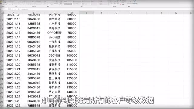 excel表格中的b二单元格式,客户编码格式为a a叉b b b b a a b b b b代表数字,叉代表字母。求一个公式,把x提取出来,将其输入在一二单元格后,我们将鼠标移到一二的右下角,一直往下拉即可得到。填充完所有的客户等级数据。如果老板此时要求我们计算a等级客户里二月份的销售金额,这实际是一个偏复杂的多条件。求和问题,我们看看a i阁下会如何应对呢?像g p t提问excel表格的a列是日期,c列是销售额,e列是客户等级。