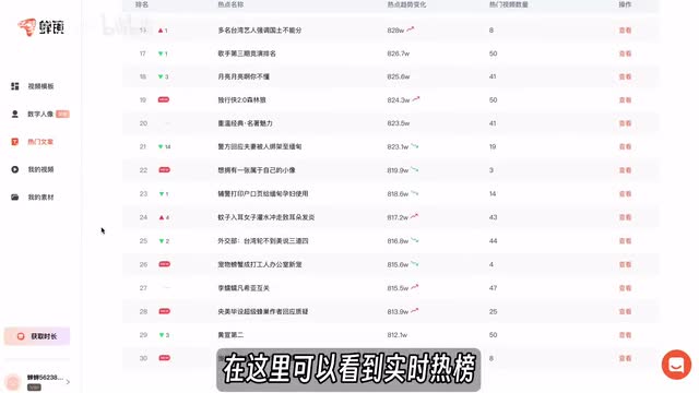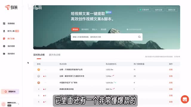 在这里可以看到实时热榜,只需要找一个和自己赛道相关的视频,一键把文案提取出来,然后再让a i仿写。