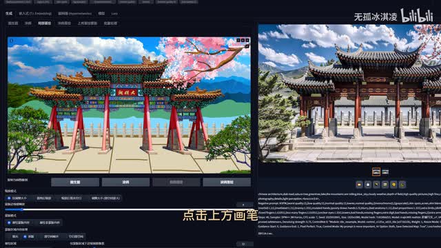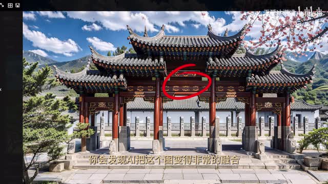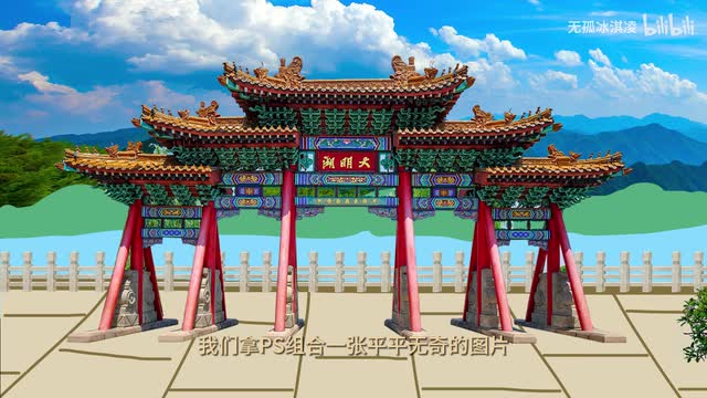 而上一次同样的步骤生成。你会发现a i把这个图变得非常的融合,但是我们的大明湖的牌子也被抹掉了达不到预想的效果。