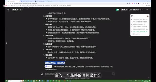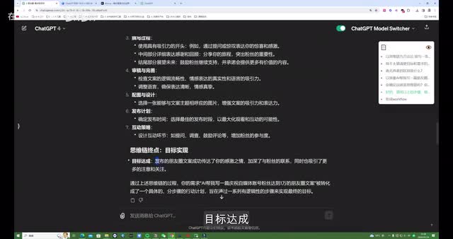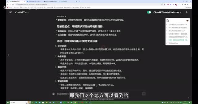 也能够激发其他人对我账号的一个兴趣,增加我的一个关注度。那基于ai大模型的这个工作原理以及它的这个能力的局限性的话。呃,我光提供一个简单的指令肯定是不能达到我的这个目标的。所以呢我需要给他提供充分的上下文背景啊,以及运用思维链的这个策略。也就是从我的这个需求提出到实现我的这个目标,中间会经历哪些过程。