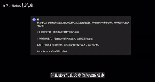 包括这个地方的非常多的这个细节呢,写的也是非常的这个深刻的。好的,我们再来看一下第二个案例,我这个地方让ai呢帮助我总结文章的一些这个核心的观点。如果这个地方我们只是直接给他指令的话,请你帮我们总结这篇文章的核心观点。那ai呢它是可能会偷懒的话,那总结出来的这个观点也可能不全面,会遗漏非常多的这个关键信息哈。所以这个时候呢,我们就可以用刚才的思维链的方式,对吧?让他遵循连贯的一系列的这个工作流程。
