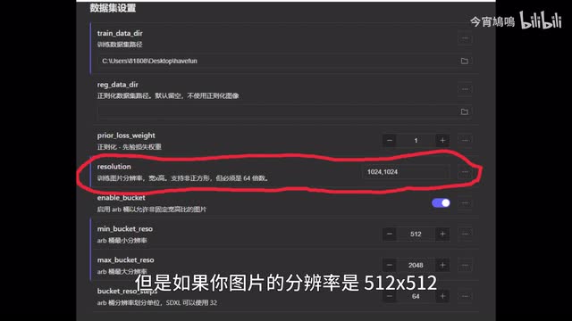 比如说我现在填写的是一零二四乘以一零二四,那么我所有的图片都会被裁剪成正方形。但是如果你图片的分辨率是五幺二乘以五幺二,或者二零四八乘以二零四八,那么这张图片是不会被裁剪的,它会被完完整整的训练。我这么说应该能听得懂吧。