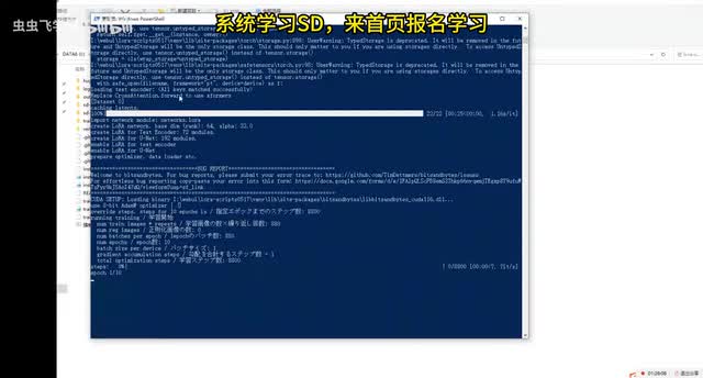 好。开始训练。好,开始后你看呢,已经开始了。就是开始学习的这么一个界面,就不用管啊,不用等,反正反正你最后看到是呃呃圈分离去就可以了啊。