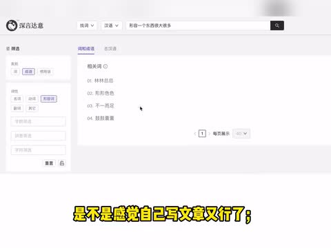 它还细心的帮你区分好名词、动词、形容词、成语等。是不是感觉自己写文章就行了,词感觉不够用。