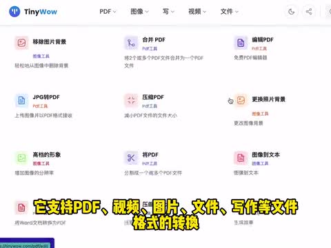 你能想得到的、用得到的转换格式它都有,而且无需注册,一键使用,完全免费、无广告。tiny all是一个功能全面、操作简便的在线文件转换工具,它支持p d f、视频、图片、文件写作等文件格式的转换,提供了超过二百个收纳工具,满足用户多样化的文件处理需求,一个平台满足几乎所有文件转换需求。