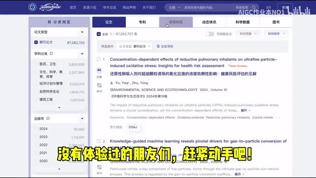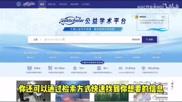 这是一个由中国科学院推动的公益性学术平台,拥有超过二亿篇的论文资料,包括期刊论文、专利和图书等,不需要注册,直接可以使用。