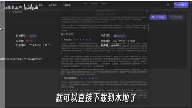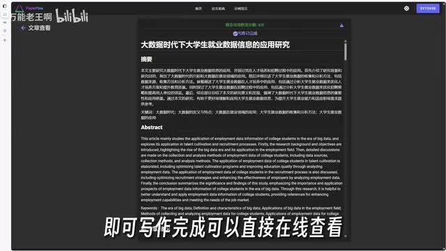 提交之后就会到写作页面了,稍等片刻即可写作完成,可以直接在线查看,因为选择在改稿的服务不满意的地方,可以直接重新生成。