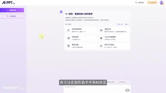 编辑和修改也完全可以在线完成。制作完成之后,点击放映即可在线预览p p t的放映效果。你可以在创作助手中和a i对话,在a i模板库中还有上百个预设的pro mt的,点击即可使用,大大提升了我们的办公效率。