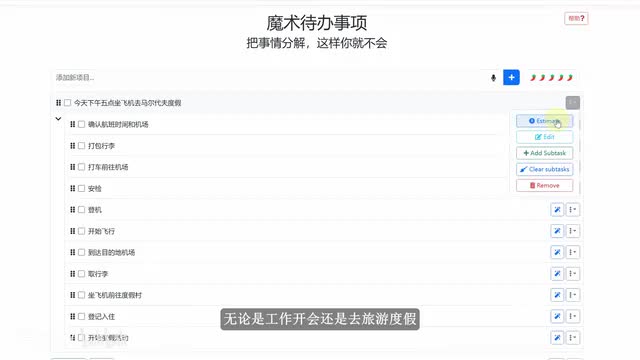 点击魔法棒即可重新生成更加详细的任务清单,而且每一项都可以大致预估一个时间,无论是工作、开会还是去旅游度假、待办事项都可以最快时间的完成。好了,以上就是本期视频的全部内容了,我是阿朱,我们下期视频再见,拜拜。