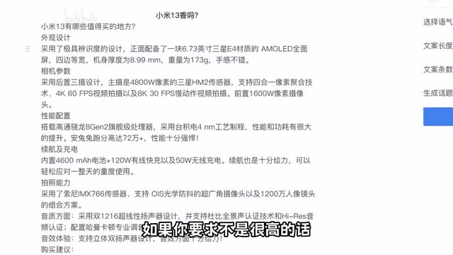 选择好之后。武器文章长度,你想生成的文数量,点击生成完。个人觉得就文章内容来说,没有专业性和参数性的错误。如果你要求不是很高的话,用它的生成的标题和文案加上自己拍摄的照片,一篇小红书的文章它就出来了,整个的时间不会超过五分钟,我觉得这大大节约了我构思和写作的时间。